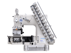 Với thiết bị kéo, lô kéo trợ lực, máy 12 kim Jack đặc biệt thích hợp cho việc may vải mỏng và phù hợp với chất liệu dày